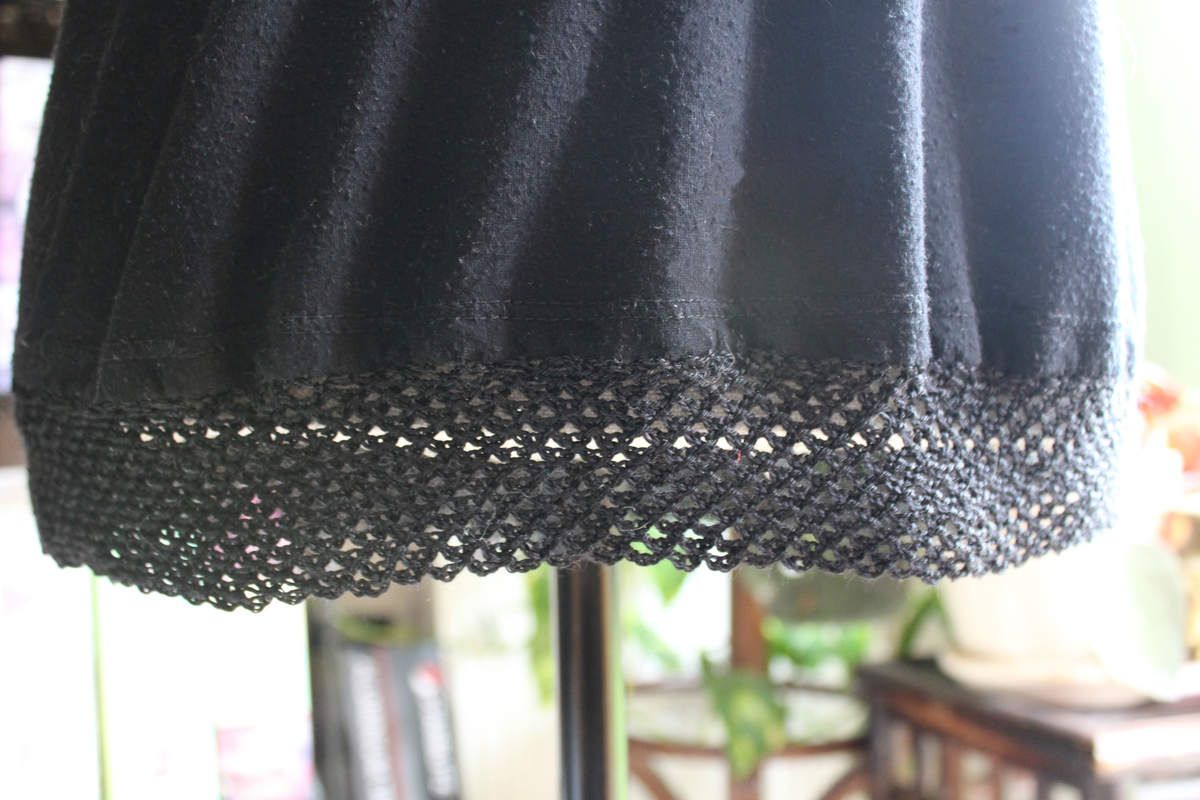 J'ai décidé de le rallonger en ajoutant un décor simple au crochet (j'ai pris un crochet n° 2 pour avoir un travail assez fin pour s'harmoniser avec le tissu) avec un fil noir satiné.