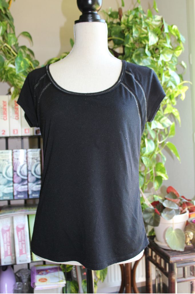 Voici l'exemple d'un T-shirt qui me plaisait beaucoup mais en fait je ne le mettais jamais uniquement parce que une fois porté, sur moi, il était trop court.